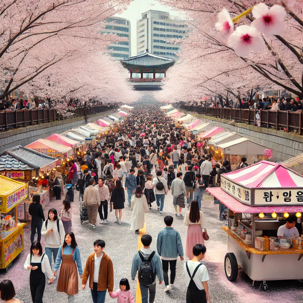 • 특징: 약 1.7km의 벚꽃길, 야간 조명 벚꽃길, 푸드트럭존, 거리 공연 등